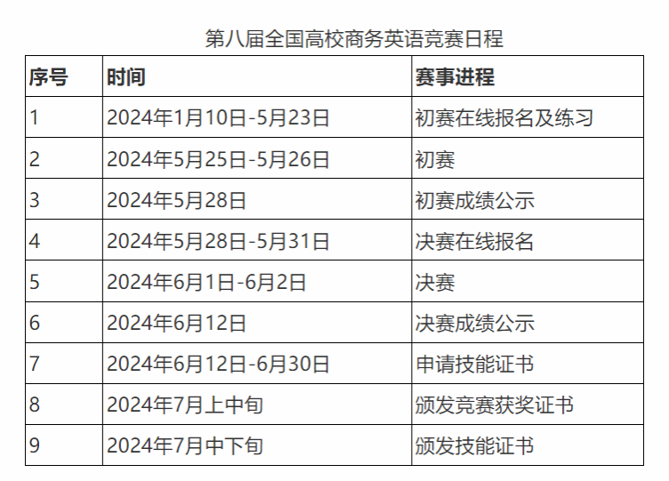 1.第八届全国高校商务英语竞赛日程