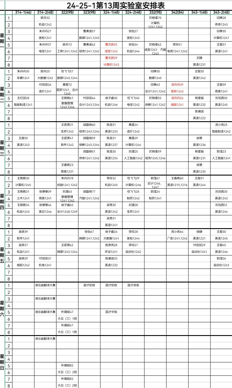 【实验教学】24-25-1第13周实验室安排表