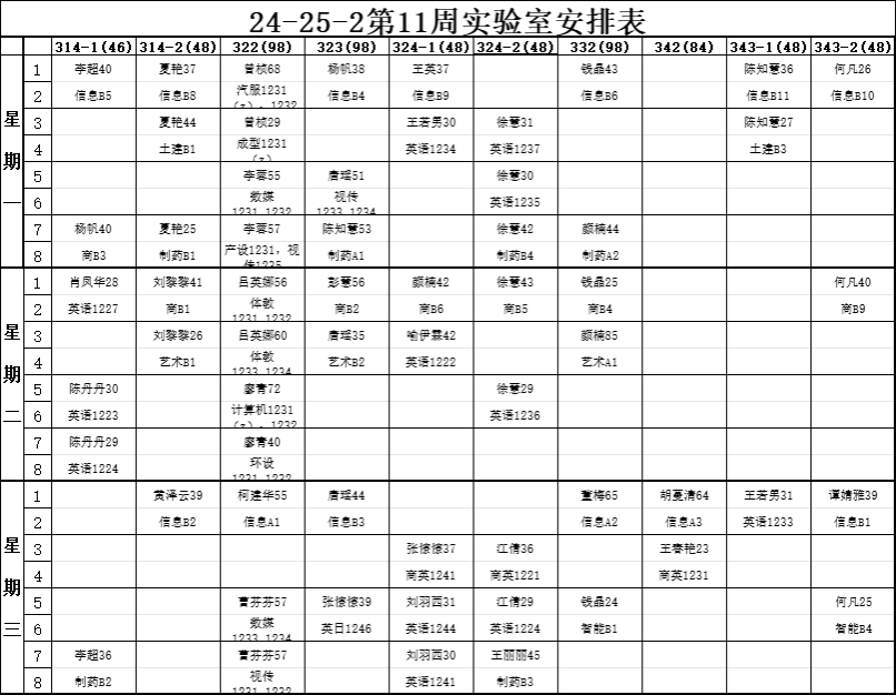 【实验教学】24-25-2第11周实验室安排表