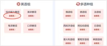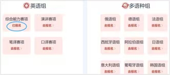 ● 具体报名截止时间请以本校通知为准。若参加英语组综合能力、笔译赛项全国统一线上初赛,每场线上初赛前一周系统将截止报名。