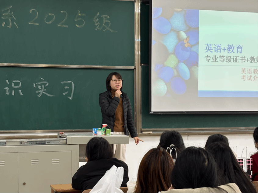 返回光谷校区后,三场干货满满的认知实习讲座相继开展。杨雯娟老师聚焦英语证书规划,从核心语言能力、翻译类、商务沟通类三大维度,系统讲解了专业英语四八级(TEM-4/8)、全国翻译专业资格(CATTI)、商务英语(BEC)等高含金量证书的报考要求、备考重点及职业价值,为同学们提供了分阶段考证的科学建议。