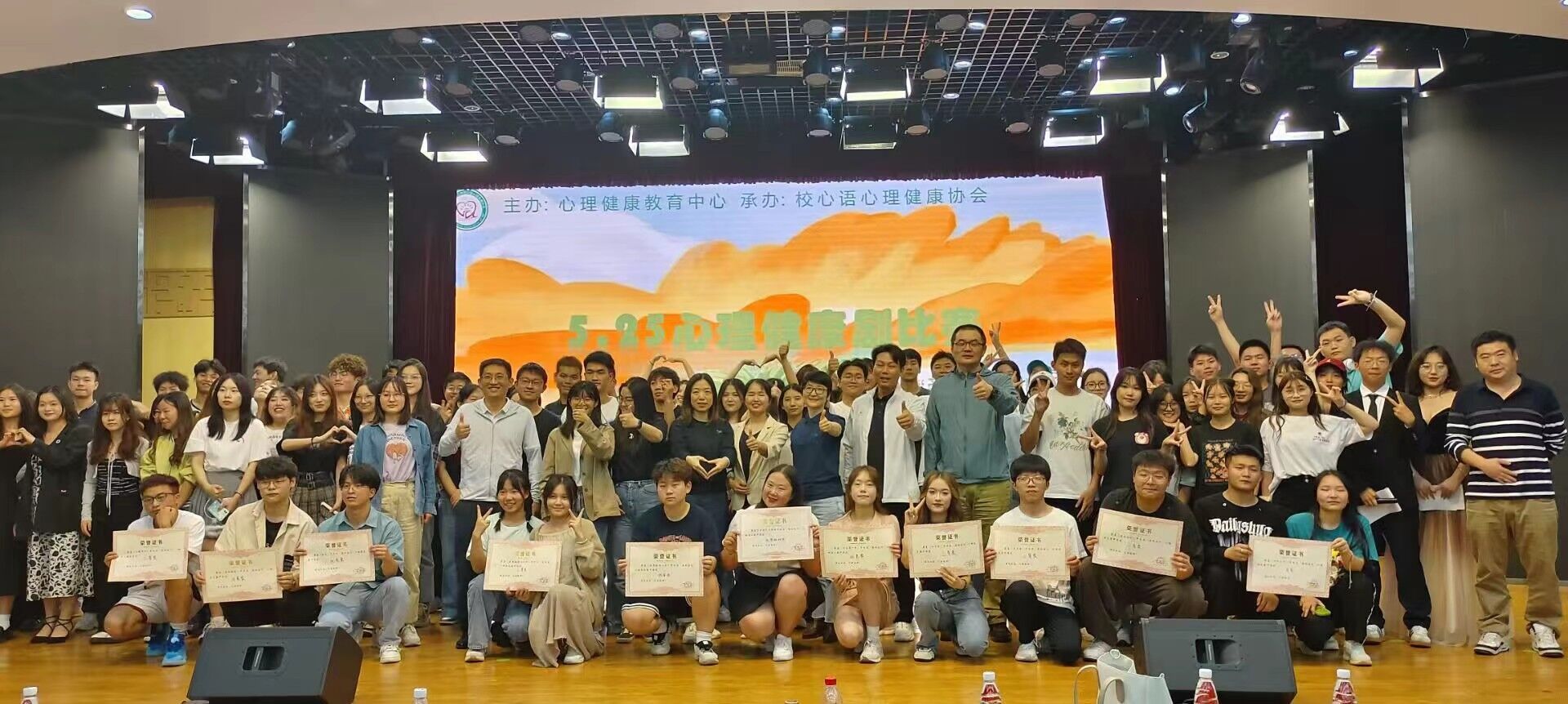 首先热烈祝贺外国语学院在这次比赛中荣获优秀奖。在比赛前,外院心协利用线上线下相结合的方式做好此次活动的宣传工作,普及心理知识。比赛时,演员们精彩用心的表演、绚丽的舞台灯光和音效以及每个情景剧所要传达的深刻,都给观众与评委们留下了深刻印象。本次心理情景剧大赛各参赛队伍的剧本都十分贴近大学校园生活,并从考研还是考公、特种兵式旅行及同学舍友之间的友情等不同方面引导剧情的发展,精彩展现了当代大学生朝气蓬勃、奋发向上的精神风貌以及他们对未来思考及感悟。其中,我院心理健康协会的《迈第一步》就以我们在校大学生最为困扰的身材容貌焦虑为话题展开了表演,那位没自信的同学在室友、朋友们的鼓励下开始大胆尝试新事物,穿自己喜欢又不敢穿的衣服,做自己平时没有勇气做的事,慢慢的变得越来越自信。短剧的结尾告诉同学们“青春不该因容貌而丧失色彩,不该因他人而定义。学会接纳自己,与自己和解。青春的代名词本该是生性自由且勇敢!人生充满未知与挫折,虽然做出改变很难,但只要敢迈步子,不要担心快还是慢,请相信:终点的红线会在雨过天晴后出现。相信我们都能找到最好的自己!”