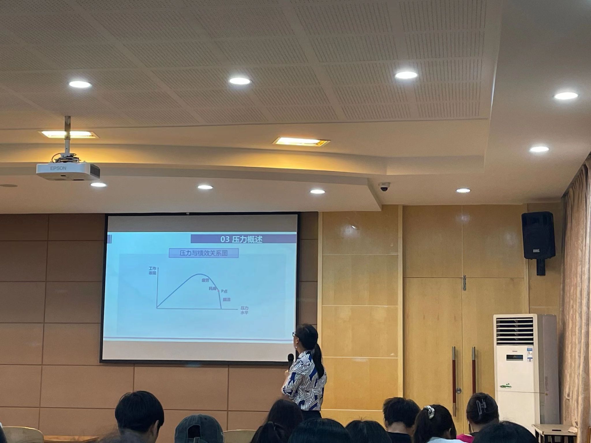 薛春艳教授首先从情绪的概述引入,阐述了情绪的种类有:喜、怒、忧、思、悲、恐、惊,情绪是人对客观事物是否符合自身需要的态度体验以及相应的行为体验,提到了情绪的三大要素和情绪的三种状态。接着讲述了情绪管理是表达正向情绪和管理负向情绪的好方法,并对“什么是压力”进行了分析与界定。她以生活压力事件为例,向同学们阐述了压力的定义与内涵、压力存在的意义、压力的特性,让同学们认识到“压力是无处不在、不可避免的,也是必要的”。她给我们分享了以下三种管理情绪的办法:①学会觉察和识别情绪;②学会接纳负面情绪;③学会稳定和调控情绪。同时,她结合心理防御机制作了进一步深入讲解,引导学生了解压力源和压力应对,通过沟通、交流、互动给现场学生提供各种心理建议和指导,引导学生正确应对压力,培养健康的生活态度和生活方式,讲座现场氛围轻松热烈。