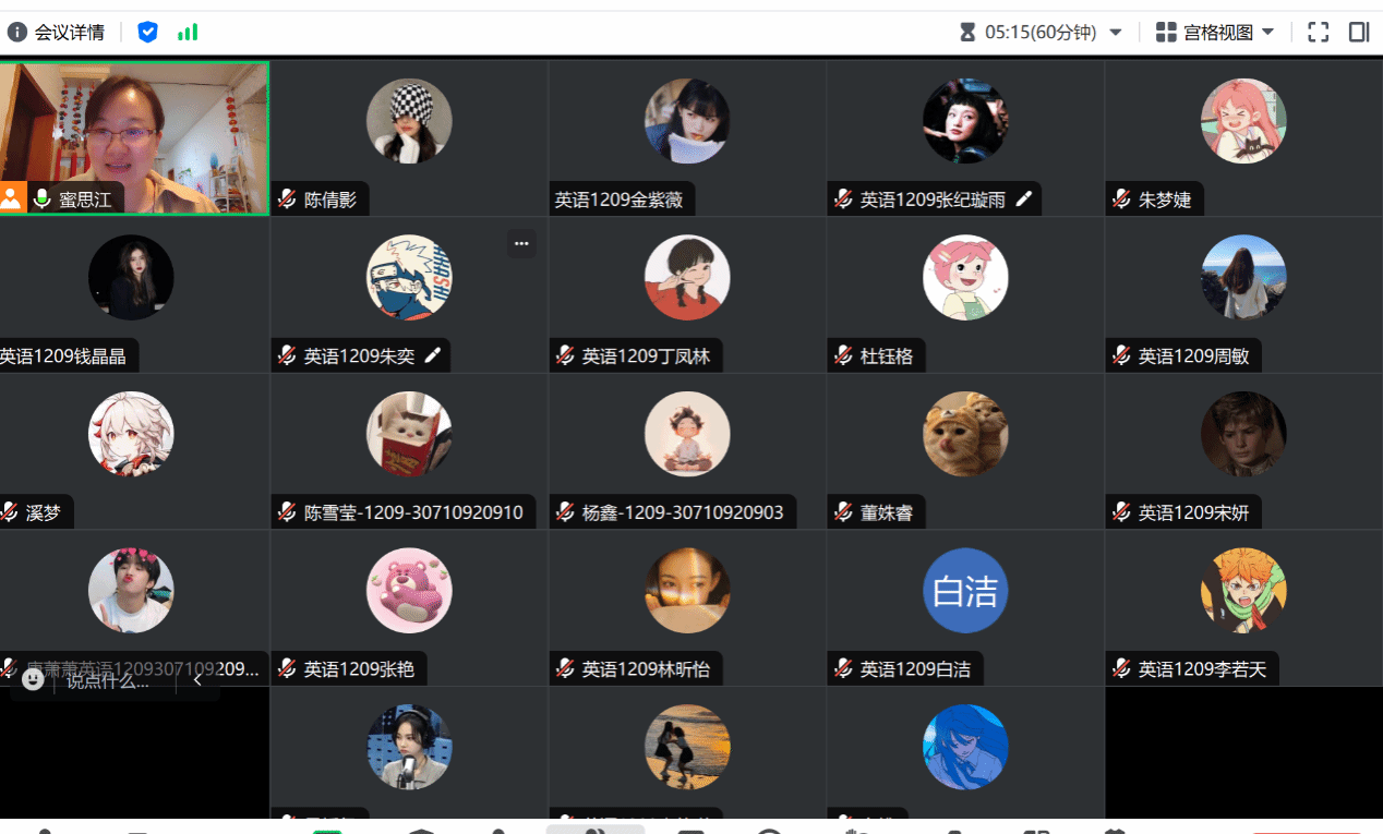 11月21日,英语1209班全体同学相聚云端,由导师班主任江倩老师担任会议主持,围绕目前毕业班同学面临的三大任务,召开了学风建设主题班会。