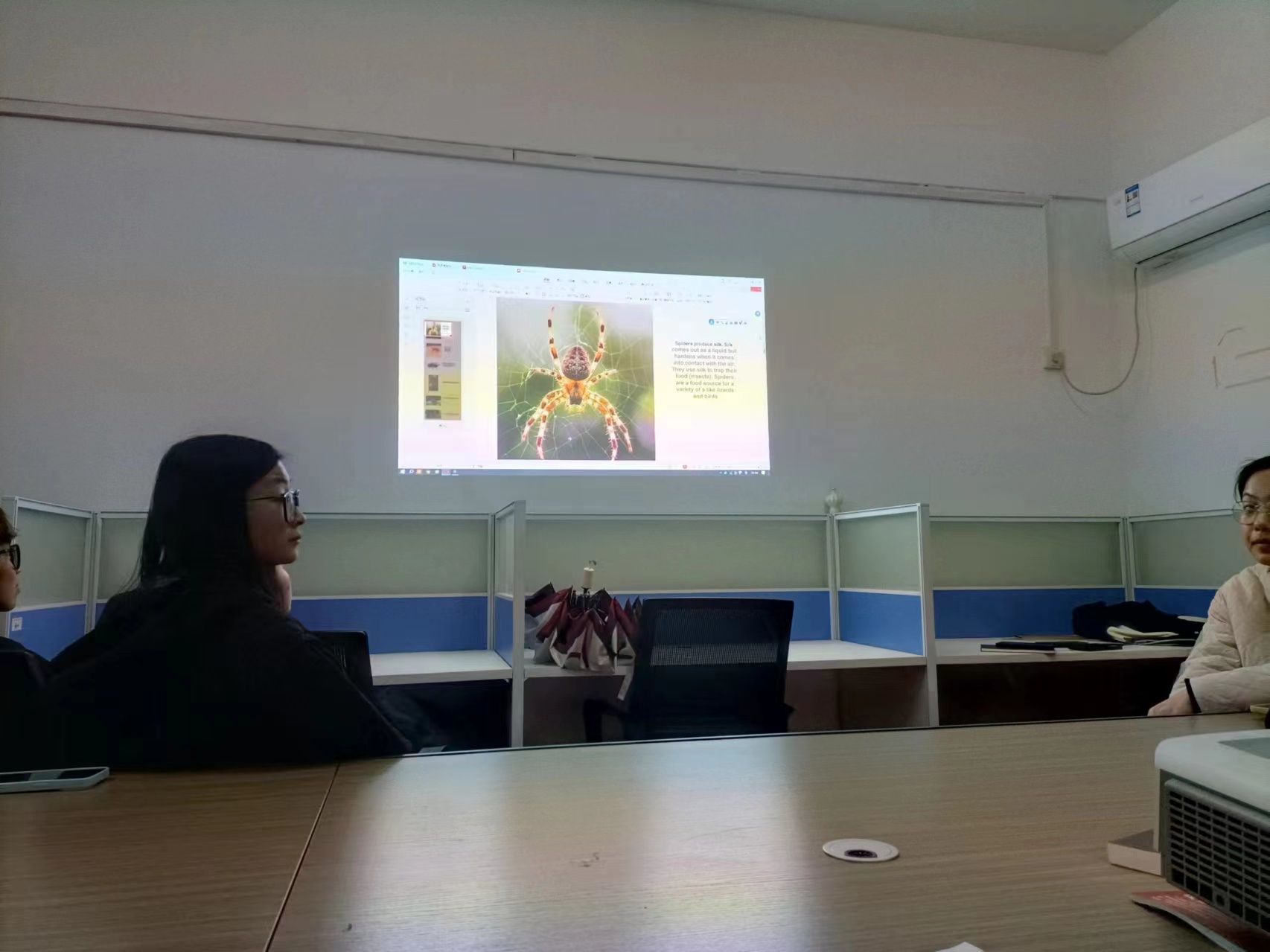 随后,外教向同学们展示了不同种类昆虫的照片,让学生们了解并认识一些昆虫的生活习惯。这一方式不仅更好地让同学们认识并掌握如何用英文来了解和介绍昆虫,同时也提高了同学们的英语阅读能力和表达能力。紧接着外教介绍了昆虫的生活习惯和日常爱好,并向同学们说明昆虫在自然环境中也起到了一定的积极作用,阐明昆虫不完全是有害的,一些昆虫在大自然中扮演者分解者和生产者的角色,它们为我们的大自然也做出了很多的贡献。