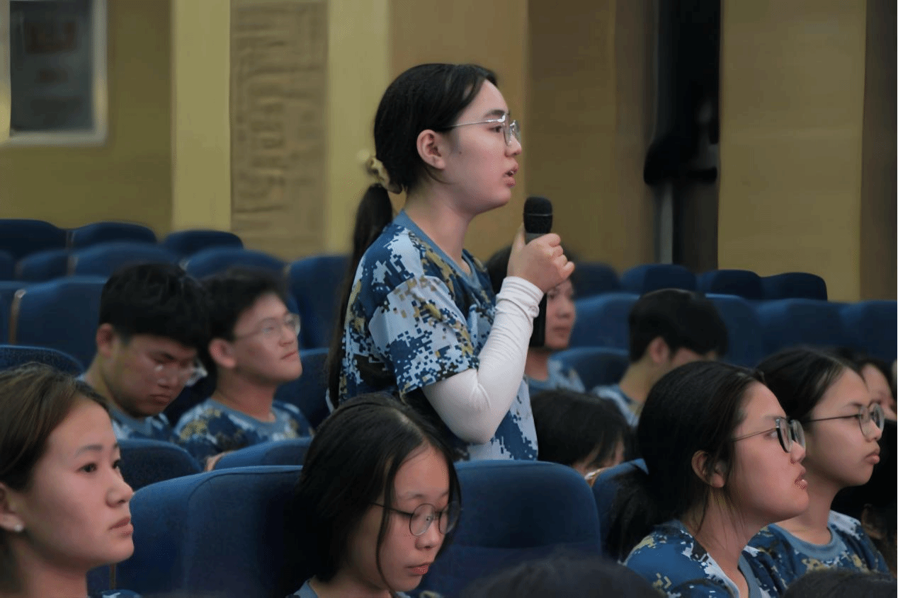 接着是新生提问环节。新同学问到在英语的职业规划中如何坚持热爱下去,闫栗丽说道要干一行爱一行,思考我如何才能做的更好,找到自己所坚持热爱的事情并为之努力,要大胆尝试,做好规划,相信自己。然后闫栗丽总裁为全体新生送出了最真挚的祝福,希望大家都能成为勇于追光的人。