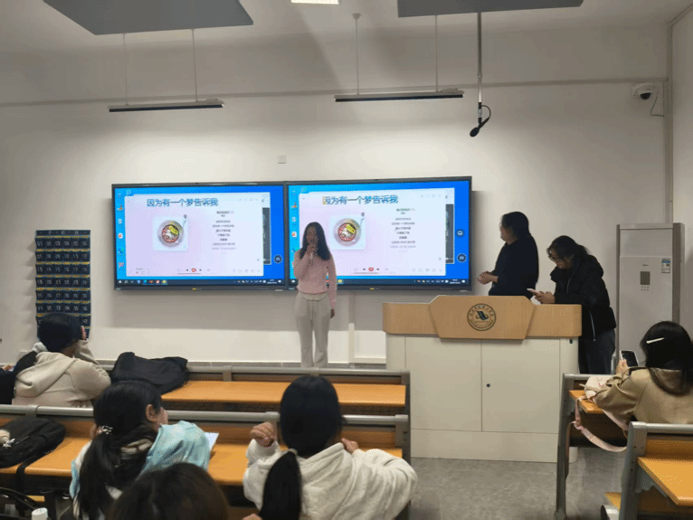 11月10日晚上,英教1256班全体同学在c208教室齐声歌唱。学生刚结束一天的学习,又迅速投入另一场需要高度协同的“战斗”——为即将到来的合唱比赛进行排练。这并非一场简单的歌唱聚集,而是一场从“我”到“我们”的青春修行。