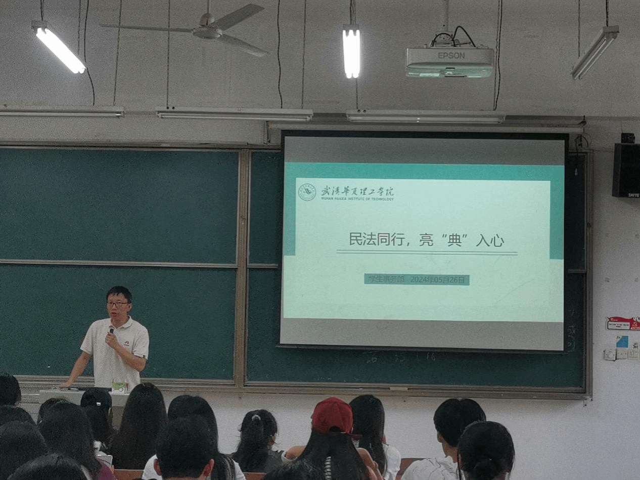 为了提高同学们对民法知识的了解和掌握,增强同学们的法律意识和法律素养,提高同学们的民法知识水平,增强法律意识,为同学们的未来发展奠定坚实基础。外国语学院于2024年5月26日18:00-18:30在教学楼1号楼201教室组织并顺利召开了“民法同行,亮‘典’入心”科普宣讲活动。本次民法典科普宣讲活动由2023级外国语学院辅导员杨森主持,2023级外国语学院全体学生参加了此次宣讲活动。