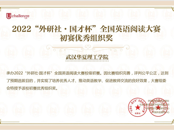 本次比赛从前期报名到赛前筹备、赛事宣传、赛前测试,加上监考团队和技术团队的支持,保证了本次赛事的顺利开展!beat365获得2022“外研社.国才杯”全国英语阅读大赛初赛优秀组织奖。