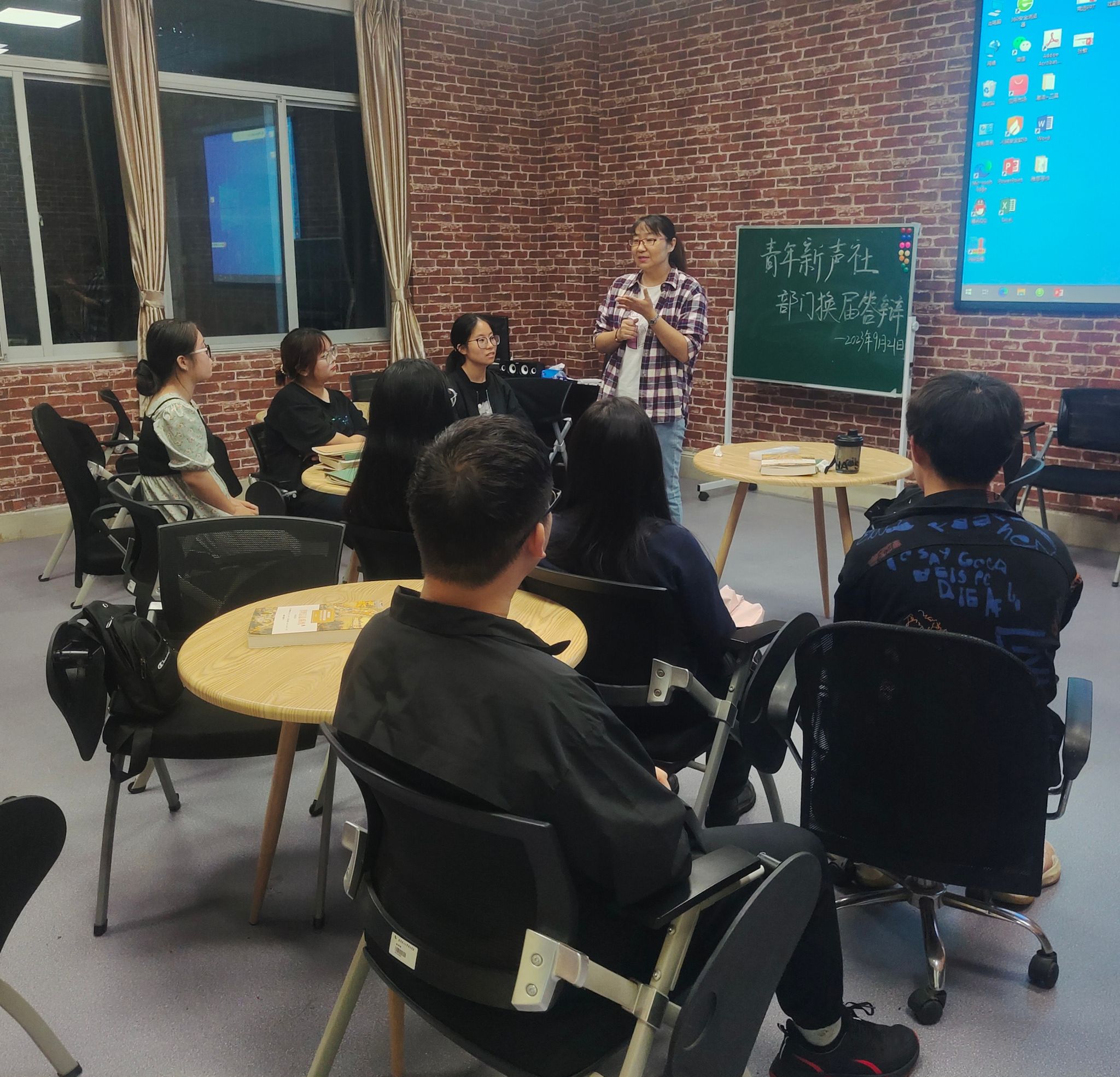 为了保障社团工作的连续性,9月21日下午6时,外国语学院青年新声社在beat365国才办公室举行2023-2024学年部门换届答辩。青年新声社指导老师刘潇和青年新声社首届社长彭乐莹担任评委,共有7位竞选者参加此次换届答辩大会,本次答辩由彭乐莹主持。