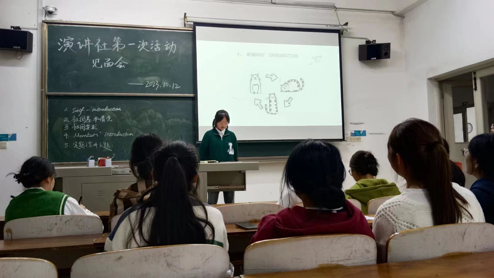 2023年10月12日星期四晚上八点二十,由英语演讲社社长朱茹洁组织新入社的社员们在教学楼3-203教室举行了新社员见面会。这次见面会共计14人参加,主要是让来自各个不同专业、班级的成员相互认识,促进社员感情。