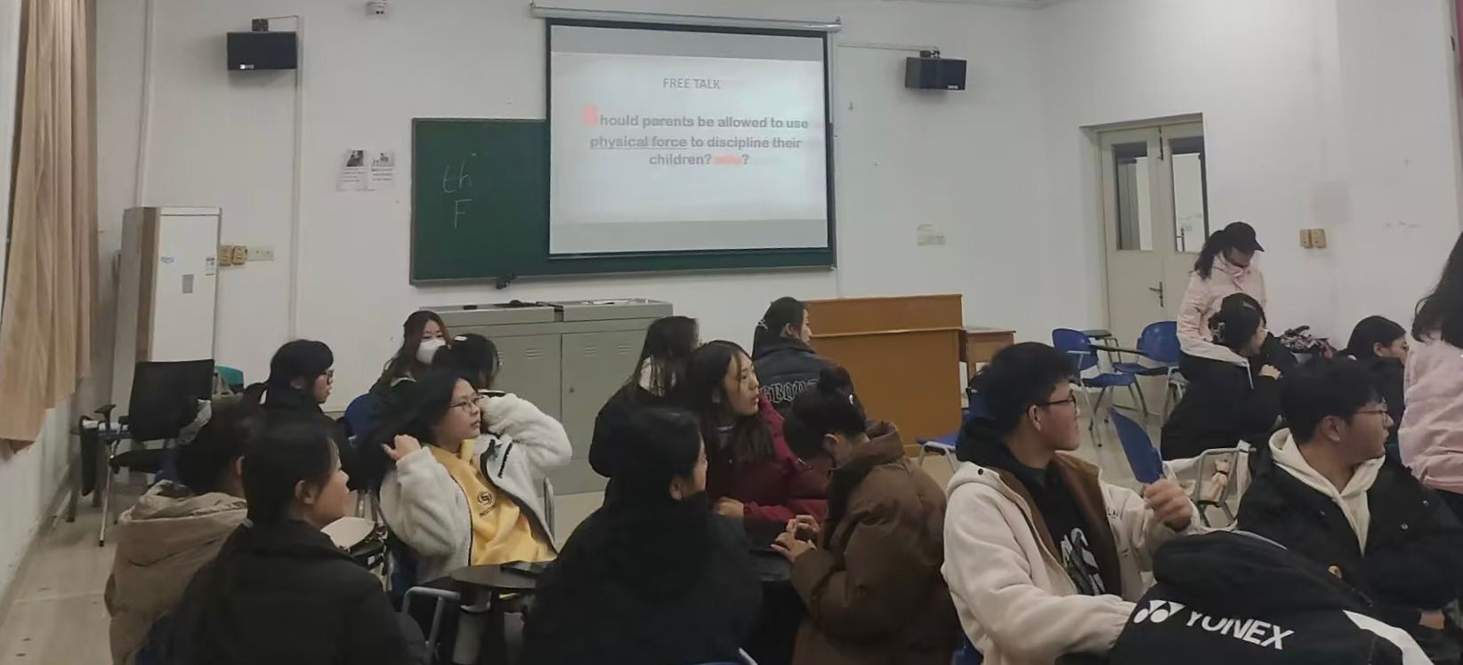 活动开始,一个简单的破冰小互动,同学们各抒己见,分享自己的经历感受,在思考、探讨、踊跃发言中,气氛逐渐升温,同学与教师也由陌生到熟悉,大家讨论了家长为了省事把手机扔给孩子就不管的行为,以及家庭成长环境的重要性,同学们发表着各自独到的见解。第二个是猜词环节,这个环节考验的是同学们的语言描述与表达能力,同时,也是对猜词同学的思维转换能力、及时反应能力,以及同学间默契配合的一个考验。第三个便是绕口令环节,屏幕上展示的是各类辅音与元音的烫嘴组合,老师也没闲着,各种发音技巧也轮番上阵,让同学们感受到什么叫做腔调!最后一项,便是压轴出场的辩论环节,同学们自觉围成多人小组,在规定时限内,对于给定的问题提出自己的看法见解,最终由小组代表上台汇报。至此,本期活动圆满完成。