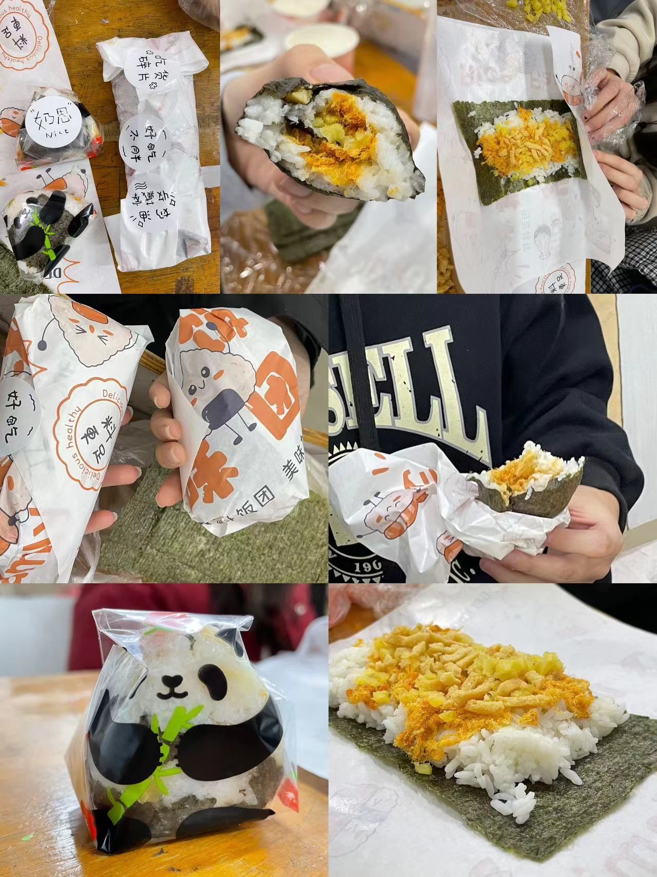 活动现场,本次活动的主讲人潘子欣同学介绍了饭团的历史、形状以及制作方法。在1000年前紫式部写的小说「源氏物语」中就出现过关于饭团的描述。当时在宫廷仪式上,人们把用米饭捏成的食物(屯食)堆满在盘子上供奉在神前。15至16世纪是日本的战乱时代,据说那时军队里兵士行军作战时所带的食物就是包有豆酱(高蛋白质)并烤过的饭团。饭团的基本形状有三角形、円盤形、俵形和丸形四种。其中,饭团被做成三角形是为了祭奠山神。 当时的日本人都认为山是具象化的神,为得神明庇护,便把饭团做成了类似山形状的三角形。如今饭团已经被做成了各种各样的形状,但便利店的饭团依旧以三角形为主。主讲人生动有趣的介绍,引起了同学们浓厚的兴趣,都迫不及待的想上手制作。在欢声笑语中,负责人将准备好的食材和工具分发给每一位参与者,大家开始动手制作美味的饭团。在制作过程中,同学们相互学习、交流,充分发挥自己的创意,将各种食材搭配得恰到好处。不一会儿,一个个独具特色的饭团便呈现在大家面前。在品尝环节,大家纷纷拿出自己的得意之作,相互品尝、交流心得,现场气氛十分融洽。