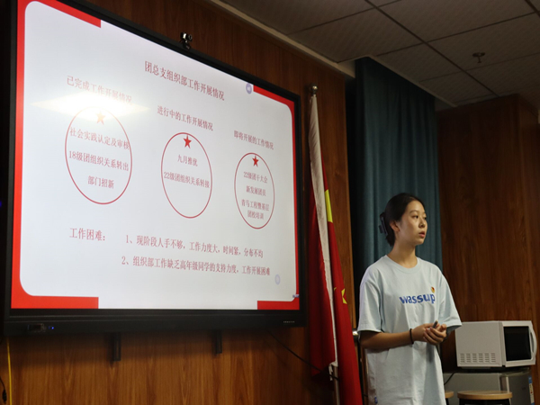 最后,团总支组织部、学生会、青年志愿者协会、国才传媒、心理健康协会、党服服务站依次汇报了各组织近期的工作情况。各位老师也根据工作情况汇报做出了点评,并对各组织以后的工作安排进行了指导。