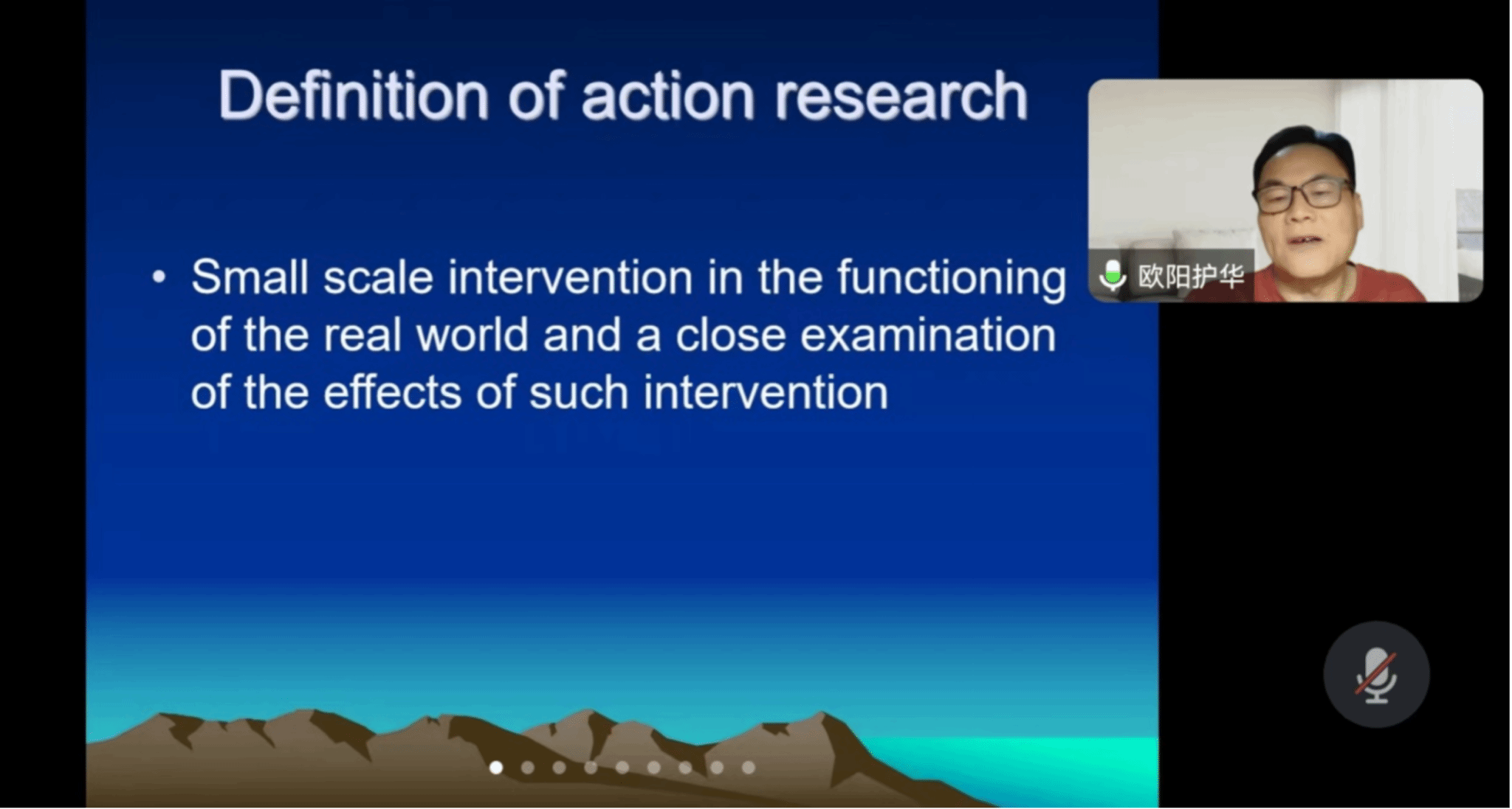 2024年10月8日晚上7:30,由广东外语外贸大学二级教授、博士生导师欧阳护华主讲的线上讲座在腾讯会议平台成功举办。这场以“行动研究——普通教师如何在日常教学中促进研究和专业发展”为题的讲座,吸引了外国语学院全体教师的积极参与和热烈讨论。