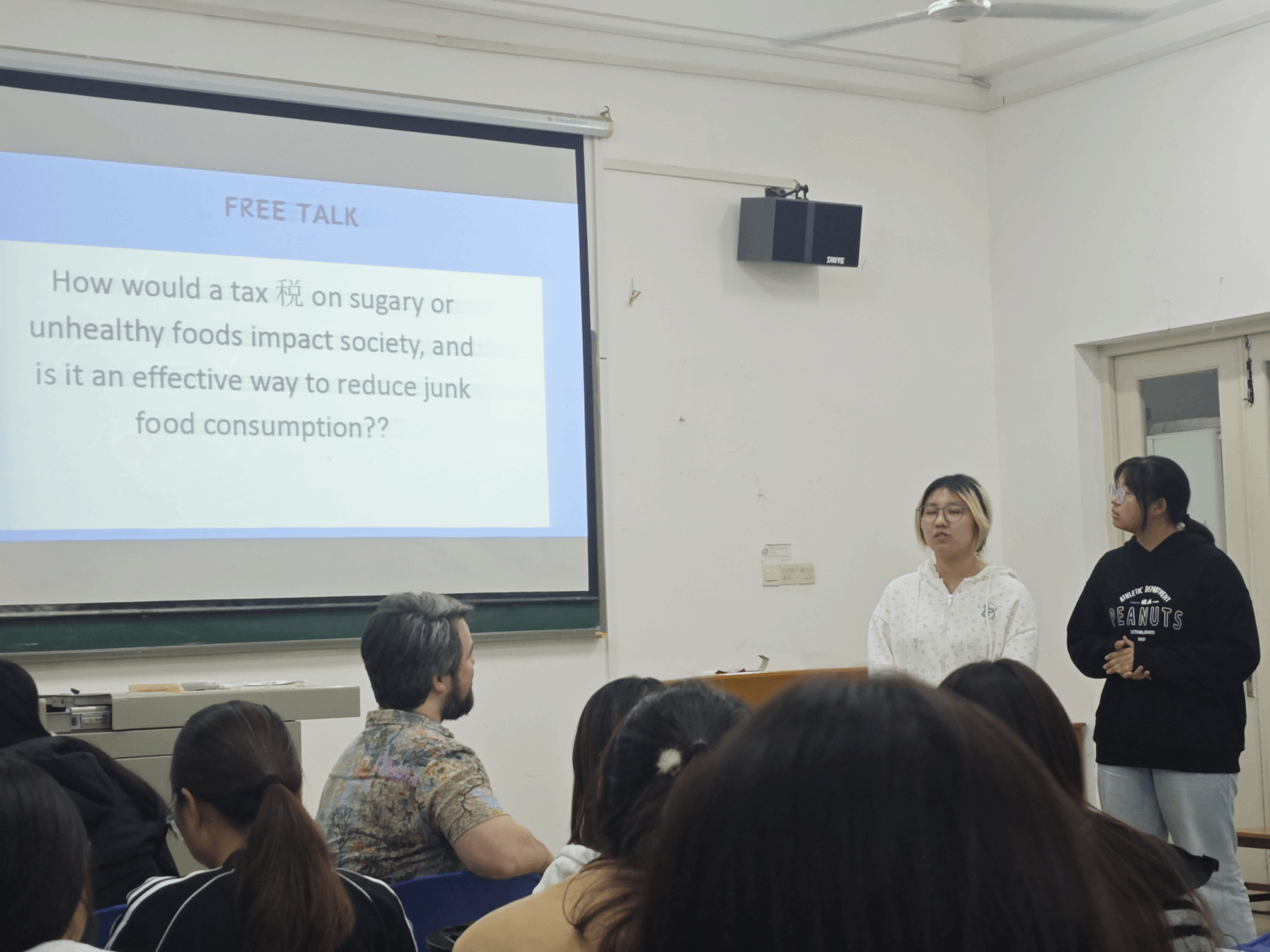 最后,活动进入到深度讨论环节。各小组围绕“关税是否是影响甜食消费的有效方式”这一颇具深度的话题展开了热烈讨论。同学们各抒己见,结合所学知识以及自身对社会经济现象的观察与思考,从不同角度阐述观点、剖析问题。这一环节不仅深化了同学们对英语知识在实际话题讨论中的运用能力,更拓宽了大家的思维视野。
