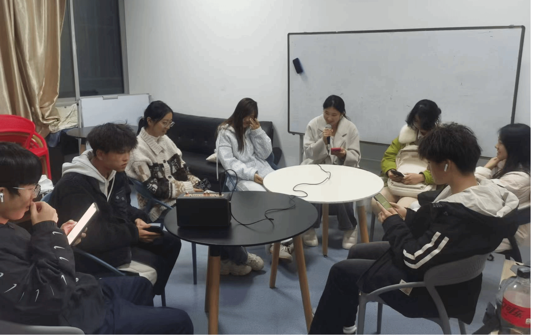 活动伊始,每位团员依次演绎英文歌曲。有的团员选择了经典的《The Day You Went Away》,那饱含深情的歌声将离别的忧伤娓娓道来;有的则带来活力四射的《Body Language》,用动感的节奏和富有感染力的演唱带动全场气氛;还有团员演唱了清新欢快的《Lemon Tree》,仿佛将夏日的清凉与惬意传递给每一个人;以及深情款款的《Last Christmas》,唱出了节日里的思念与回忆。他们或激昂澎湃,或婉转悠扬,充分展示出扎实的唱功与独特的音乐理解,歌声在排练室中回荡。