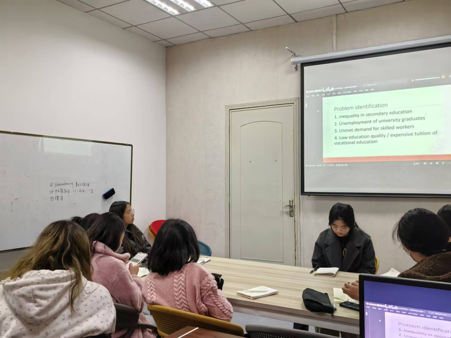 在一系列的准备活动完成后,部长带领成员们学习了政策类辩题的应对方法以及结构,使用优秀辩论教练视频辅助讲解在具体情况下的应用方法,并且使用该辩题"THW actively incentivize students pursuing vocational education over university education"来启发部员们对于此政策下存在的现实问题的思考,便于部员准备充实发言内容,以及拓展了对职业教育的认识,不再局限于带有偏见的思考。