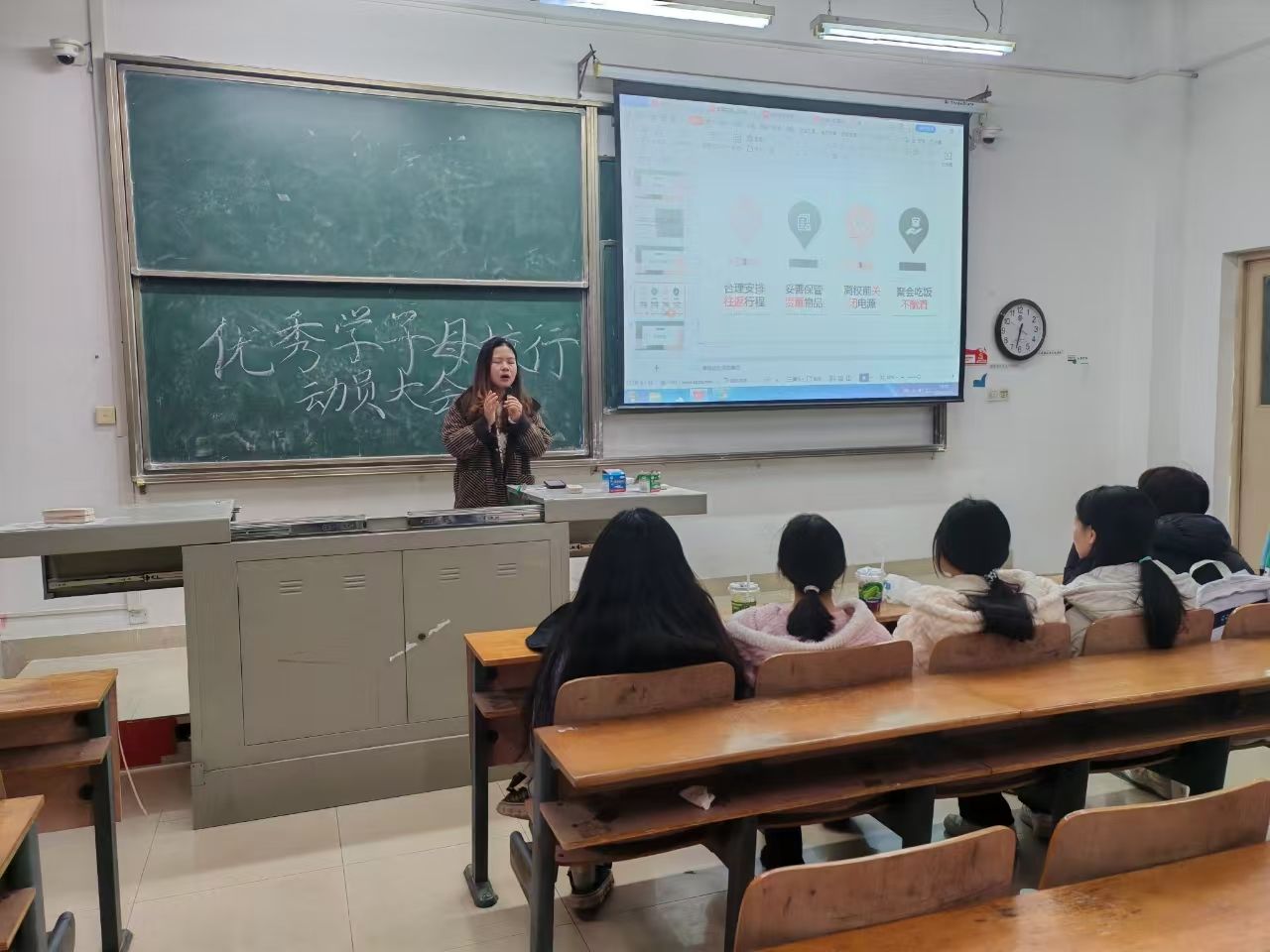 首先,王欣佳老师通过ppt的形式,向同学们详细讲解了交通安全、网络安全、用电安全等。她通过真实案例来警示同学们,例如假期离校忘记关电源引发火灾、使用劣质充电宝导致危险等,让新生直观认识到安全无小事,时刻提醒学生归途选正规交通、离校做好断电检查。