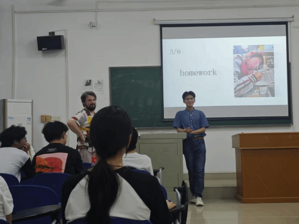 在随后的自由讨论环节,主题聚焦于 “AI translators now surpass human accuracy, yet language learning apps boom. Why do we still crave learning languages when technology can ‘speak’ for us?”同学们各抒己见,从不同角度深入剖析语言学习在 AI 时代的意义。有的同学结合自身经历指出,尽管 AI 翻译器十分精准,但学习语言能让我们更直接、深入地沉浸于目标语言文化之中。比如在阅读原汁原味的外文文学作品时,AI 翻译虽能传达大致意思,却难以传递字里行间蕴含的文化韵味与情感深度,而自主学习语言可以填补这一空缺,帮助我们更好地理解不同文化,拓宽视野。有的同学则强调,语言学习过程是对大脑思维的锻炼。AI 虽能快速输出翻译结果,但学习语言促使我们主动思考词汇运用、语法结构和表达方式,极大地提升自身思维能力和认知水平。在你来我往的讨论中,大家不仅深化了对语言学习独特价值的理解,也在交流中提升了英语表达的逻辑性和深度,愈发清晰地认识到在 AI 盛行的当下,语言学习依然有着不可替代的重要性 。