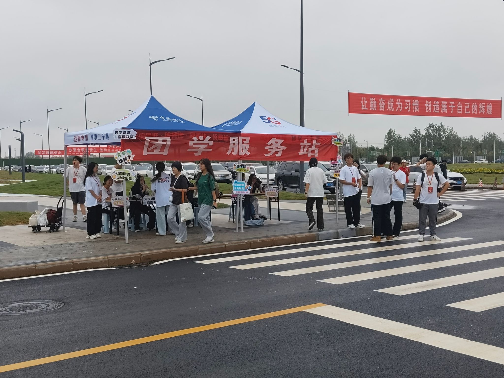 一早,校园里就洋溢着热闹的氛围。校门口、主干道旁,迎新指示牌醒目可见,身着统一服装的志愿者们穿梭其中,成为校园里一道亮丽的风景线。他们热情地迎接每一位新生和家长,帮忙搬运行李,引导新生办理入学手续,耐心解答各种疑问,用真诚的笑容和贴心的服务,让初来乍到的新生们消除了陌生感,迅速融入了这个大家庭。
