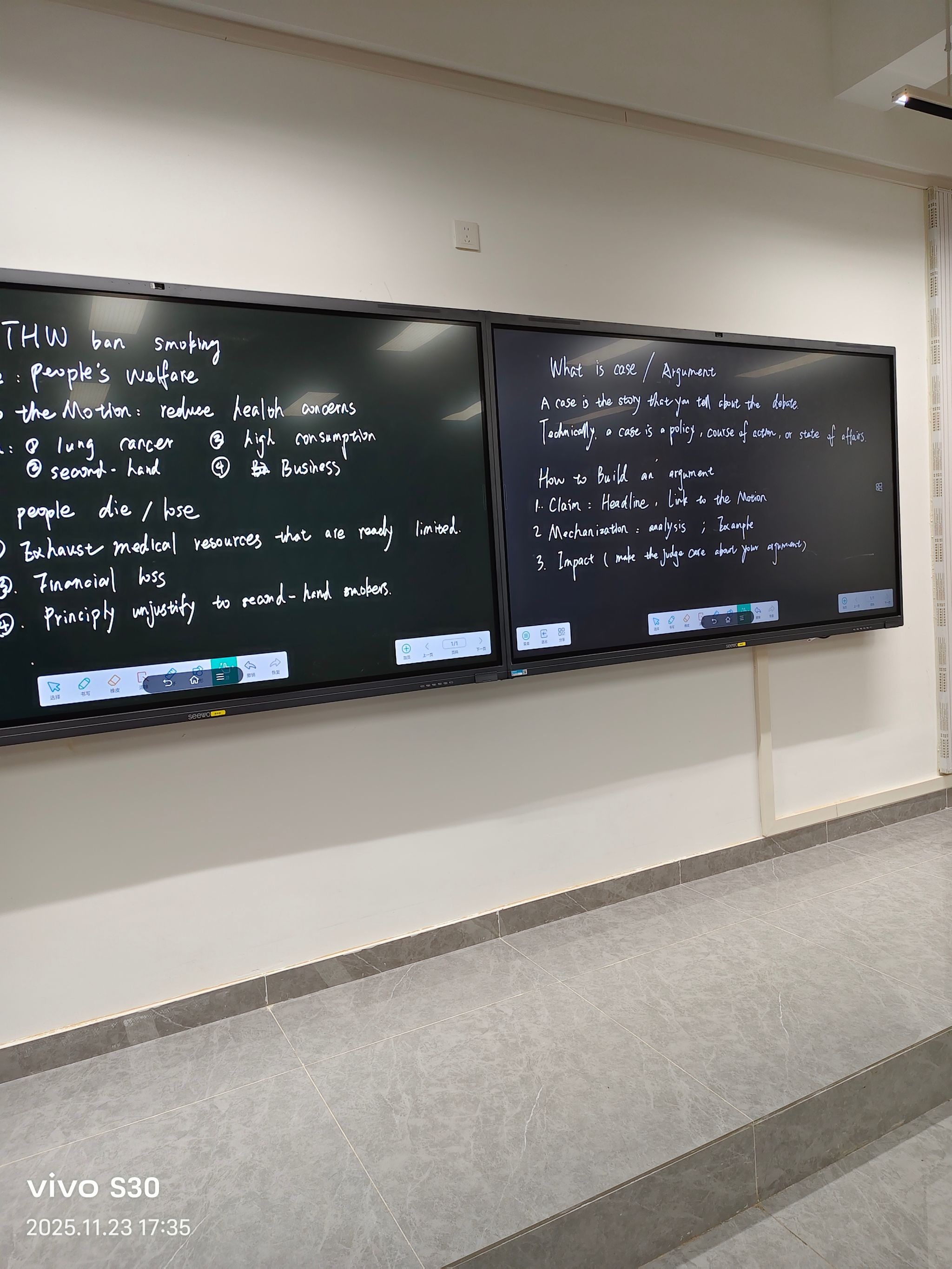 本次培训聚焦“如何打造完整辩论论点”,以“THW ban zoos(本院主张禁止动物园)”“THW ban smoking(本院主张禁烟)”为实践案例,拆解论点的三大核心模块:1.主张(Claim):需提炼论点核心(如“禁止动物园是保护动物福利的伦理必然”),明确与辩题的直接关联;2. 实施机制(Mechanization):解释论点落地路径(如“2年内将动物园动物转移至政府资助的保护区”),辅以具体细节增强说服力;3. 影响(Impact):阐述论点实际价值(如“禁止动物园可减少动物压力行为”),让评委直观感知论证意义。