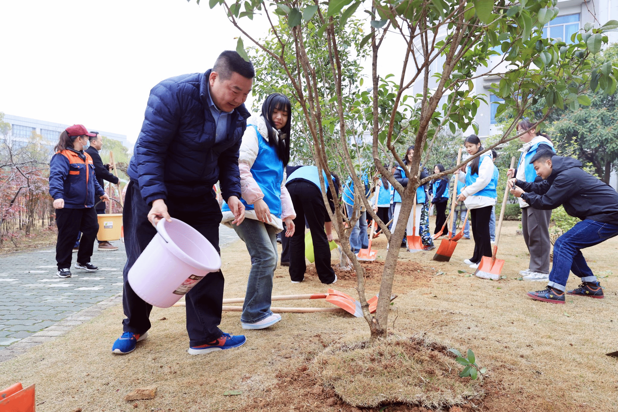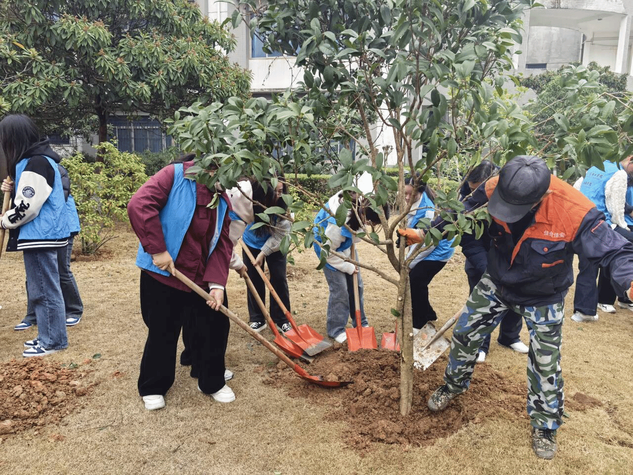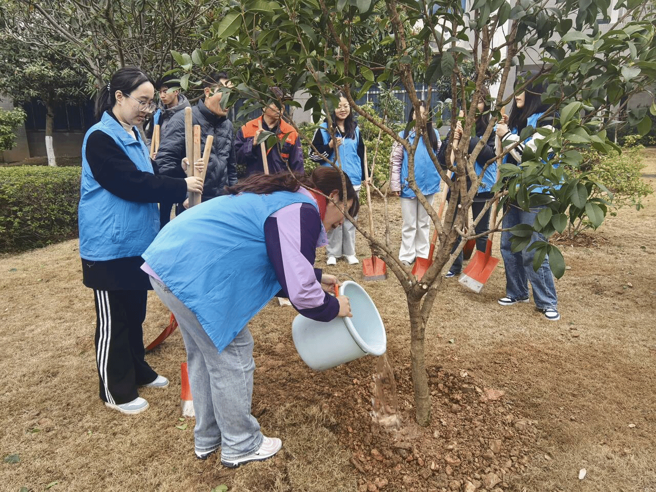 在植树活动顺利结束后,英语1245班的学生志愿者张国心的一番话,为此次活动增添了别样的温情与意义。他真诚地说道:“通过亲手种植桂花树,我对学校有了更深的归属感和认同感,也更加爱惜校园环境了。”简单质朴的话语,满是对活动的真切感悟。这不仅体现出张国新在劳动实践中的成长与收获,更从侧面反映出此次植树活动在强化学生校园归属感、引导学生树立环保意识方面发挥的积极作用,激励更多同学以实际行动参与到校园建设中来。
