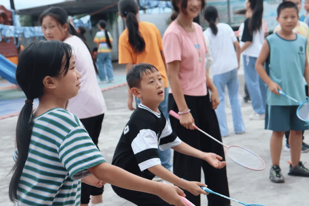 随后,小学员们分成几个队伍,都争做最强的一方。热身结束后,精彩的比赛项目轮番上演,包括背对背运球、趣味保龄球、羽毛球接力赛、套圈圈等。比赛过程中,小老师们也纷纷参与进来,一起参与完成比赛项目。在背对背运球比赛中,星星老师和茹茹老师配合默契,赢得教师组第一名。每个参赛选手都竭尽全力,秉承着“友谊第一,比赛第二”的游戏精神。