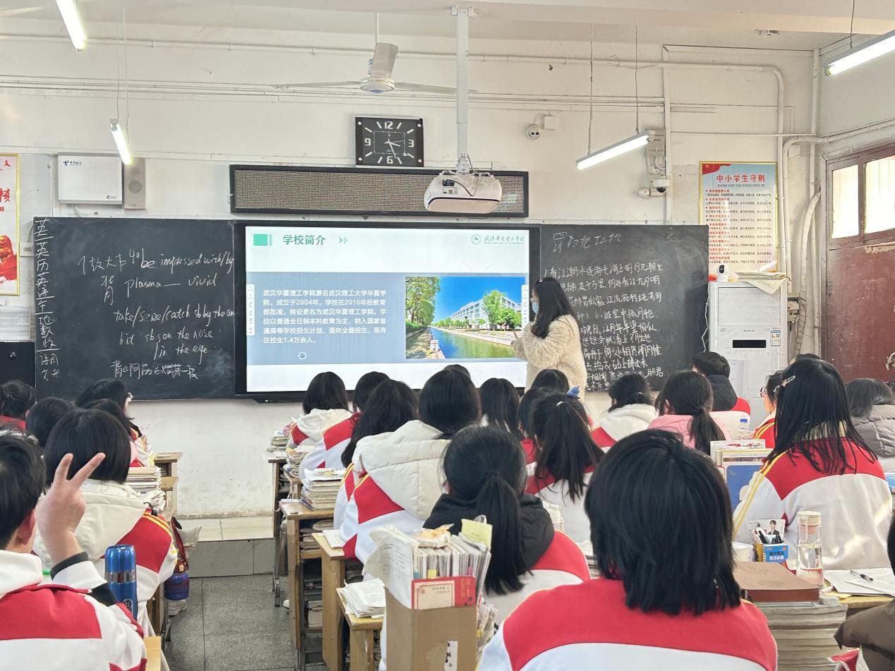 其次,他们走进班级,向同学们进行了一个简短的自我介绍。刘晰曼同学首先向同学们介绍了beat365官方网站的学校概况,如校史人文、人才培养情况、招生政策等内容,增进中学生对beat365的了解,提高beat365的知名度,也向同学们讲述了丰富多彩的大学生活,如校园活动、住宿环境、饮食情况、学习生活以及多元化的社团组织。众多校园图片及视频让同学们对大学生活更是充满了憧憬与向往。