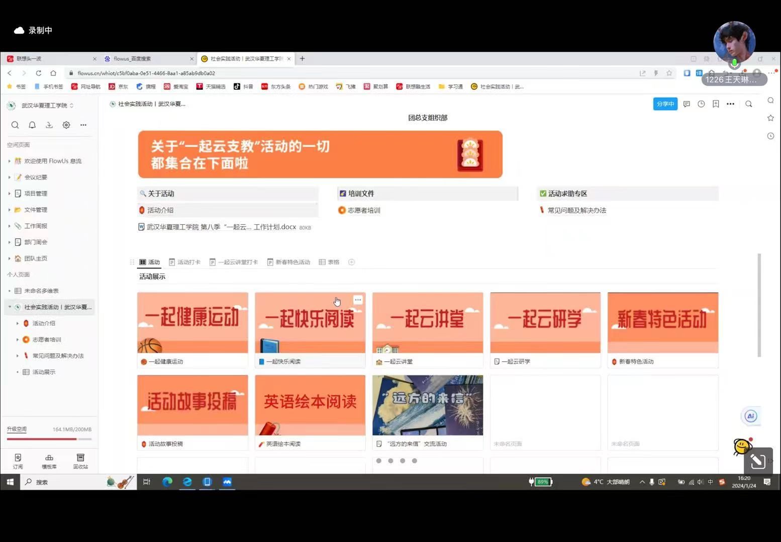 此外,此次“一起云支教”的副领队王天琳还向大家详细介绍了打卡平台flowus的应用,告诉大家各项活动的打卡地方和填写方式以及云讲堂授课材料的下载地方,从而确保各位志愿者都能够顺利开展各项教学任务。