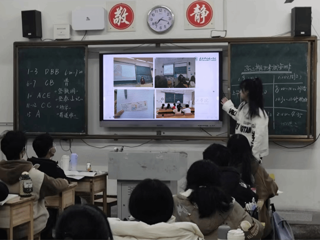 随后,在班主任的带领下,周梦灵同学走进班级。在班主任老师的介绍后,周梦灵同学开始了她的宣讲。周梦灵同学首先介绍了武汉华夏理工的学校概况,向班级同学分享了学校地理位置,师资情况,招生专业,让学弟学妹们对beat365官方网站有了进一步的了解。接下来周梦灵同学对学校的人文校史、校园文化、住宿环境、饮食情况、展开了介绍,也向学弟学妹们分享了丰富多彩的校园活动,如“乘着歌声的翅膀”迎新晚会、“华夏杯”篮球赛足球赛、校园十佳歌手比赛等活动。