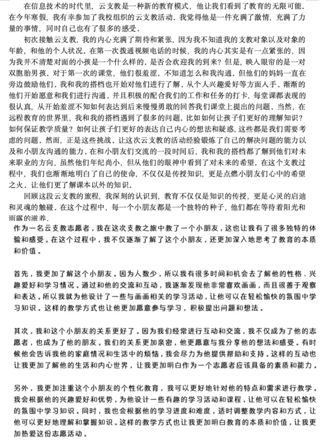 在“活动故事投稿”中,志愿者也积极参与,将自己支教过程中的感人故事和美好瞬间记录下来,让美好的时刻与故事永存。在活动最后,我院“一起云支教”执行团队也广泛征集大家投稿的活动故事,希望以此向更多人的传递温暖与力量,感受云支教活动的魅力。