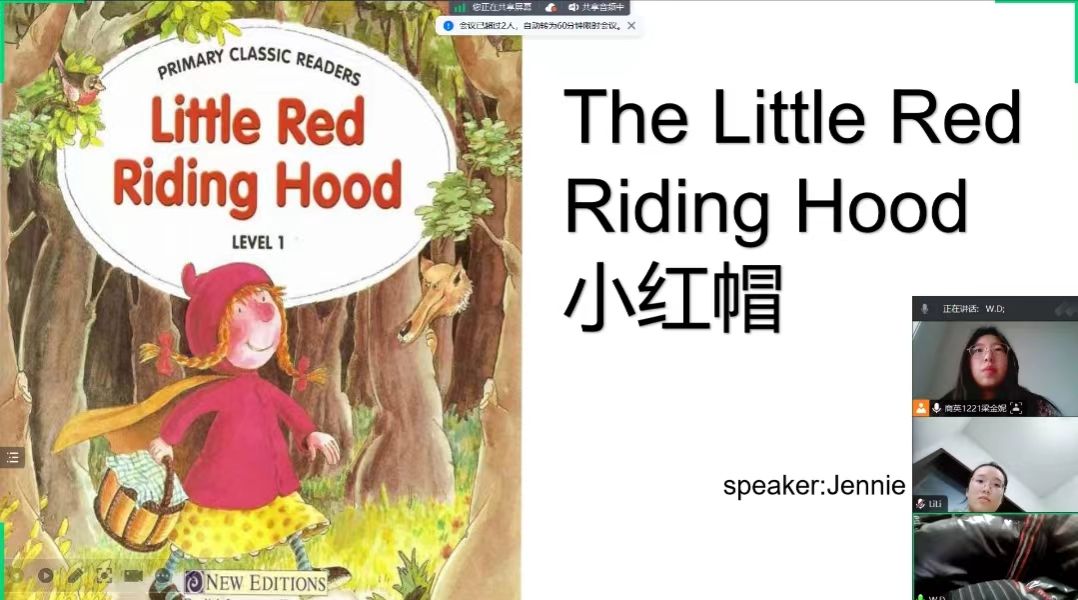 其次就是英语绘本阅读课程一共上了两节。一节主题是小红帽Little Red Riding Hood另一节课的主题是灰姑娘Cinderella。这是两个小朋友最感兴趣的,也是我印象最深刻的。通过给他们上《小红帽》绘本阅读课,他们学到了一些新单词,比如:天鹅绒丝绒,“set out”的意思,“run off”的意思等等,同时也理解到了小红帽的天真和善良。第2节课呢,给小朋友带来《灰姑娘》这节英语绘本阅读课。这个故事主要讲述了灰姑娘是如何找到幸福的一个故事,给他们布置的课后作业是简述灰姑娘的主要内容。在课程中我涉及到了很多他们会学到的单词以及一些重点单词,短语,固定搭配等等。这对他们的帮助很大,并且他们学到一些新单词,比如有一个单词“ball”我们经常见到的意思是球类的意思,比如“basketball”,“football”等等,但是在这里文中的意思却是舞会的意思。并且这个单词很重要,它是故事发生的地点与主人公息相关。上完这个英语绘本阅读课程他们也收获满满从刚开始的不感兴趣到逐渐感兴趣,我认为是一大进步。