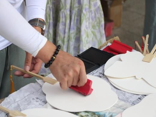 自那日起,紧锣密鼓筹备,“漆扇”、“簪花”艺术于草埠湖镇盛放。思想碰撞、新故向荣,草埠湖镇居民和实践队一同探寻、一同感受非遗魅力。