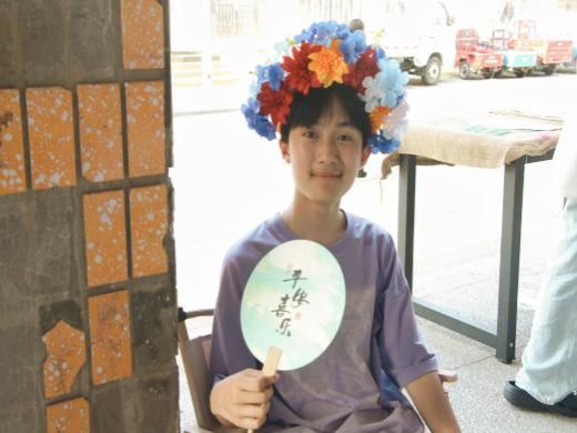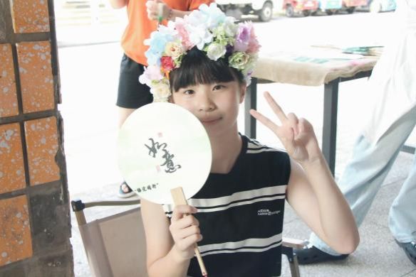 漆扇和簪花活动结束后两天,走在草埠湖镇子的大街小巷,看到镇子上的人手里摇着的、店里摆着的、家中小孩拿着的,是当日同实践队一块儿制作的手工漆扇,色彩丰富、山水汇聚。镜头里,一张张灿烂明亮的笑脸,头戴簪花,手摇漆扇,目光清亮。传统文化正一种喜闻乐见的方式被“语党同行”实践队的成员们流转着,带入到乡野镇间,“语”文明共对话。