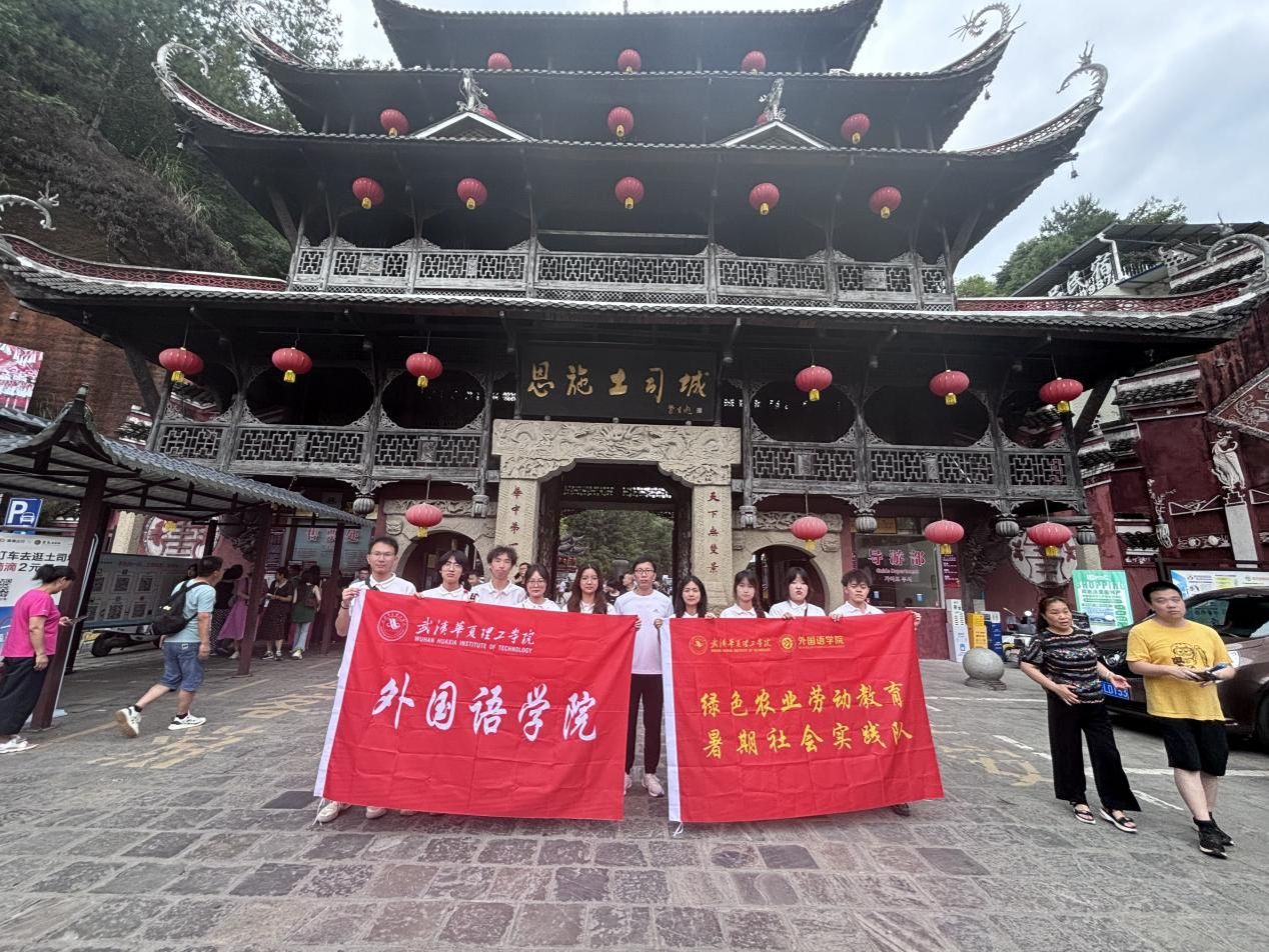 为了增强学生对于地域特色文化与地域自然景观差异认知,深化对自然界的敬畏和尊重,培养环境保护意识,以及增强对不同文化传统的认识。beat365官方网站组织绿色农业劳动教育暑期社会实践队于2024年 7月 8日在湖北苗仙聚生物科技有限公司经理周福的带领下深入恩施州各自然名胜区,同时,前往恩施土司城与恩施女儿城开展自然与人文探索教育活动,了解当地特色文化,助力本次劳动教育的顺利开展。
