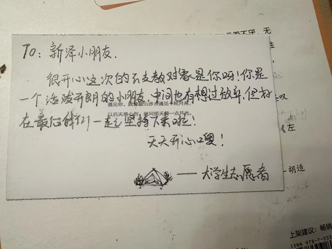 活动开始之初,各地区的大学生志愿者们用最朴实、最真挚的文字,书写着对中小学生们的问候。每一张明信片都饱含着深深的情感与期待,仿佛在无声中搭建起了一座跨越千山万水的友谊桥梁。
