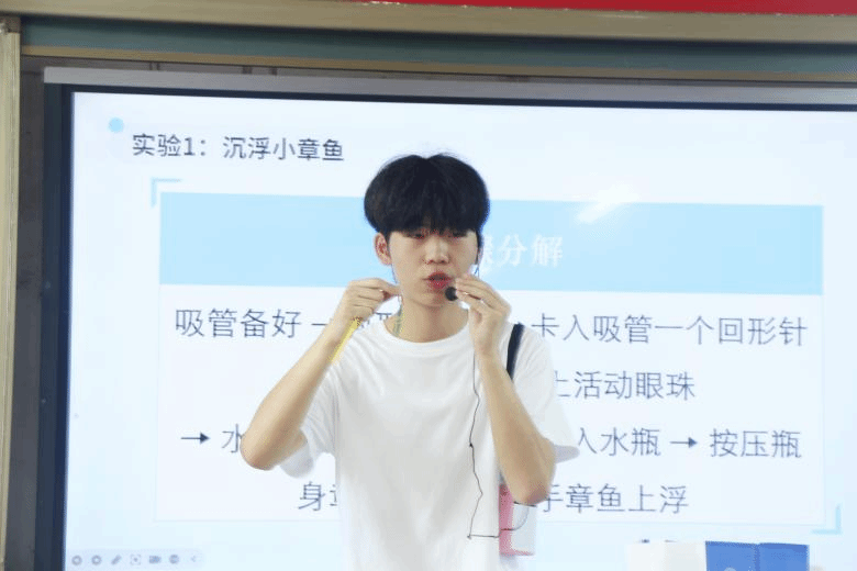 耀祖老师的科学实验课,瞬间点燃了孩子们探索未知的热情。小老师通过简单而神奇的实验道具,带领孩子们开启了一场光影探秘之旅。耀祖老师深入浅出地解释了科学原理,并引导孩子们亲手操作“小章鱼”,通过捏放矿泉水瓶让小章鱼上下沉浮。在亲手实践与观察思考中,科学的种子悄然播撒,孩子们眼中闪烁着求知的光芒。