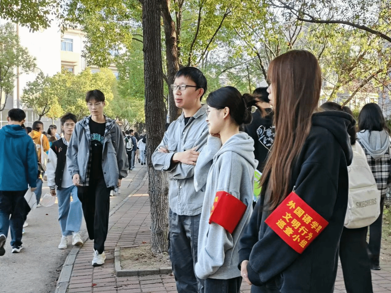 10月23日上午,外国语学院青年志愿者协会在教学楼正式开展文明行为巡查小组活动,活动主题为“承文明之邦,扬华夏之光”。协会指导老师杨森亲临活动现场,对活动开展情况表示热切关心,参与今日活动的成员有协会副会长赵诗钰,干事梁倩、商琪。