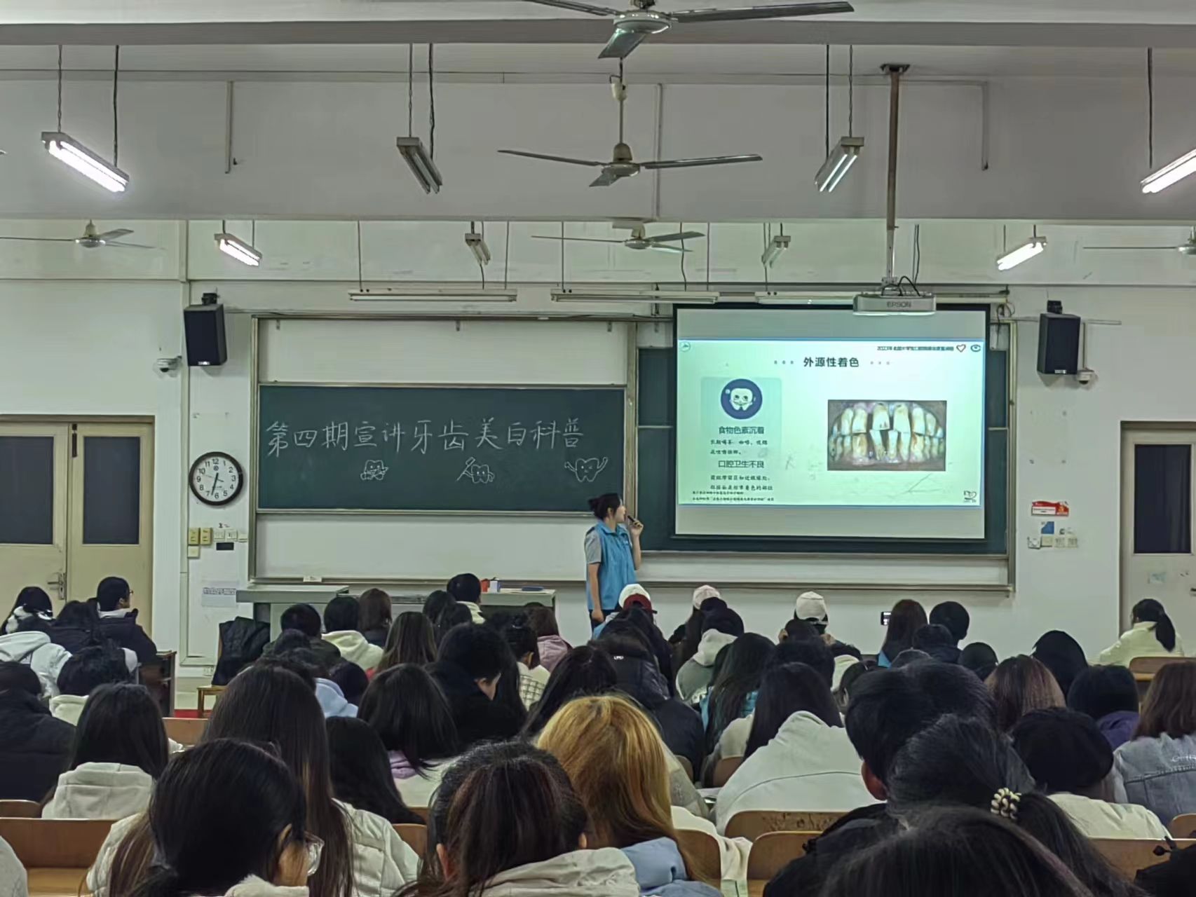 本次宣讲活动的主题是牙齿美白,正式开始前,杨咏祺以两张具有强烈对比效果的牙齿图片作为引入,立即引发了观众的兴趣。她通过提问的方式,让观众们积极表达自己的想法,从而引出了牙齿美白的重要性。