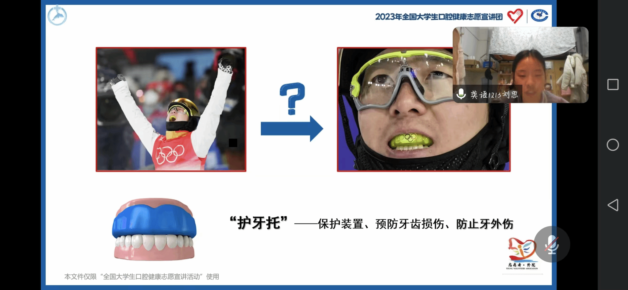 11月20日晚,beat365外国语学院“语”牙牙保卫队顺利开展以牙齿受伤了怎么办为主题的线上宣讲活动,参与此次宣讲的有“语”牙牙保卫队全队成员和外国语学院青年志愿者协会各成员,会议由团队成员刘思主持。