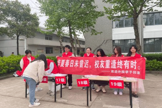 为服务往届不方便提前领取准考证的校友顺利参加专八考试,4月13日上午,外国语学院党员服务站于教学楼前开展“校友驿站”志愿服务活动,欢迎往届校友重返华夏参加英语专业八级考试,本次活动的主题是“华夏春日未曾迟,校友重逢终有时”。