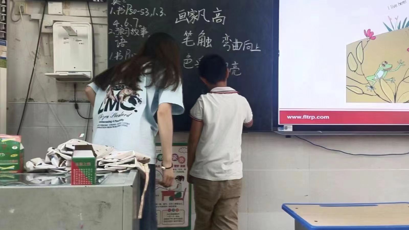 首先,我院学生志愿者愿者进入对应的班级,与被辅导同学们再次见面。随后,志愿者们开始第一次授课,她们充分发挥专业优势,将绘本教学、英语启蒙等内容融入晚托课堂。她们通过生动的语言和有趣的互动游戏,激发孩子们的学习兴趣,让他们在轻松愉快的氛围中掌握知识。同时,志愿者们还辅导孩子们完成课后作业,耐心解答他们的问题,帮助他们养成良好的学习习惯和思维习惯。在英语教学环节,志愿者们带领孩子们唱起了英语歌曲,观看了英语视频。这些丰富多彩的内容不仅提高了孩子们的英语水平,也让他们在潜移默化中感受到了中外文化的差别与各自的魅力。同时,志愿者们还鼓励孩子们大胆开口说英语,培养他们的自信心和口语表达能力。
