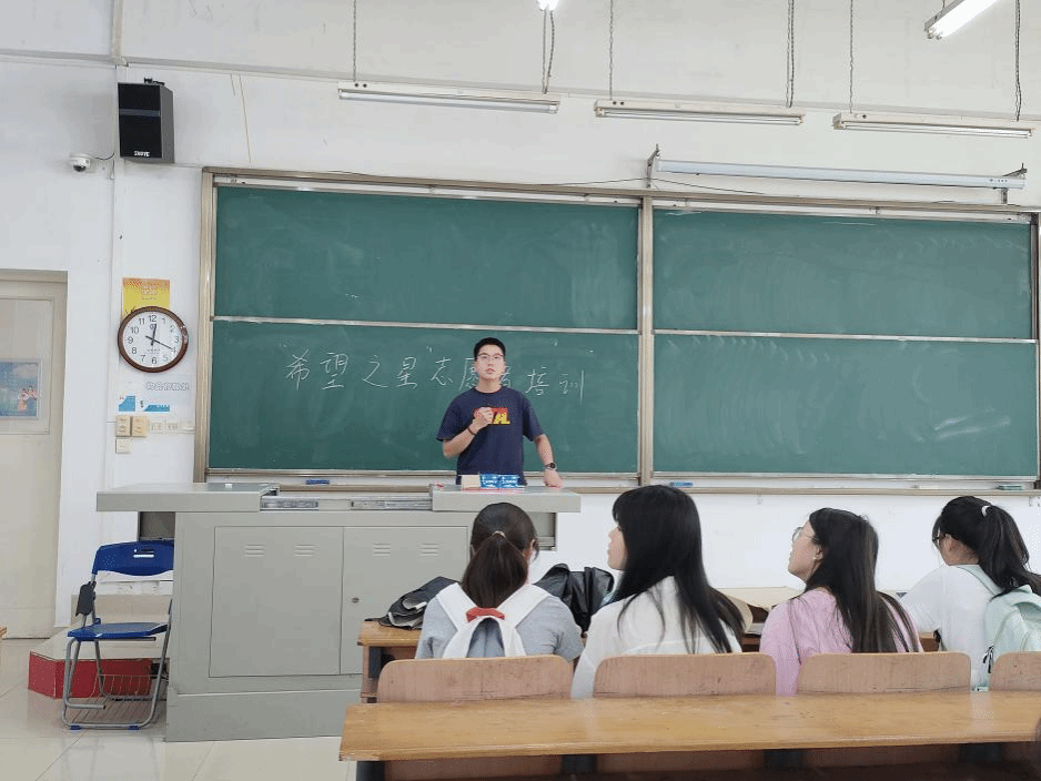 培训会上,贺志立、陈明睿、冉礼燕、肖佳仪等四位同学分别分享了自己在武汉市赛志愿服务中的工作经验,吴碧凯为志愿者们详细讲解了本次志愿服务的岗位要求。