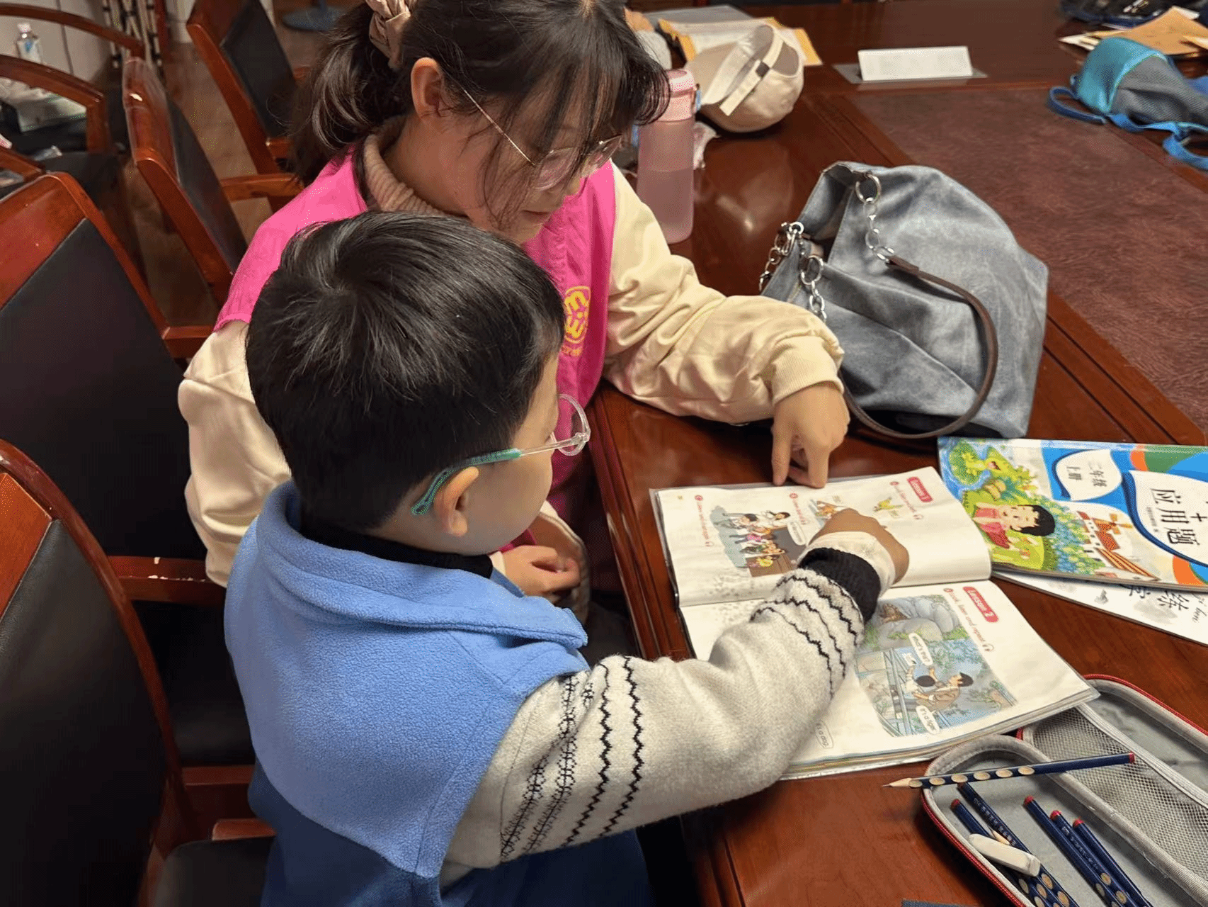 活动现场,志愿者们为小朋友们提供了一系列实用且有趣的英语学习方法和技巧。通过询问、交流、教读发音等多种方式,让小朋友们在轻松愉悦的氛围中学习英语,提升了他们的英语学习兴趣和自信心。之后,志愿者们耐心地辅导小朋友们完成作业,在此过程中,外国语学院的志愿者们始终保持着高度的责任心。