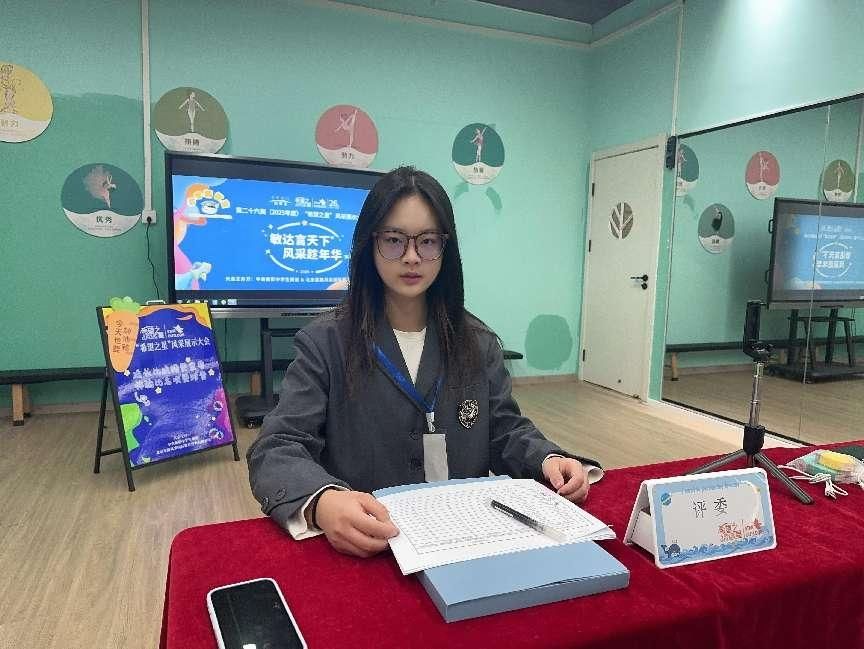 作为华夏文旅工作室的一员,肖佳仪同学在评审过程中,依据比赛规则和标准,对参赛儿童的表现进行了细致的观察和专业的评分。做到不仅关注孩子们的表演技巧,更重视他们的舞台表现力和创意表达,并与其他评委一起,通过专项打分加权计算的方法,为每位小选手提供了公平、全面的评估。在评审工作中,肖佳仪同学展现了华夏文旅工作室成员的专业素养和责任感。她仔细记录每位选手的表现,确保评分的准确性和公正性。此外,她还积极参与到比赛的组织和协调工作中,确保比赛流程的顺利进行。