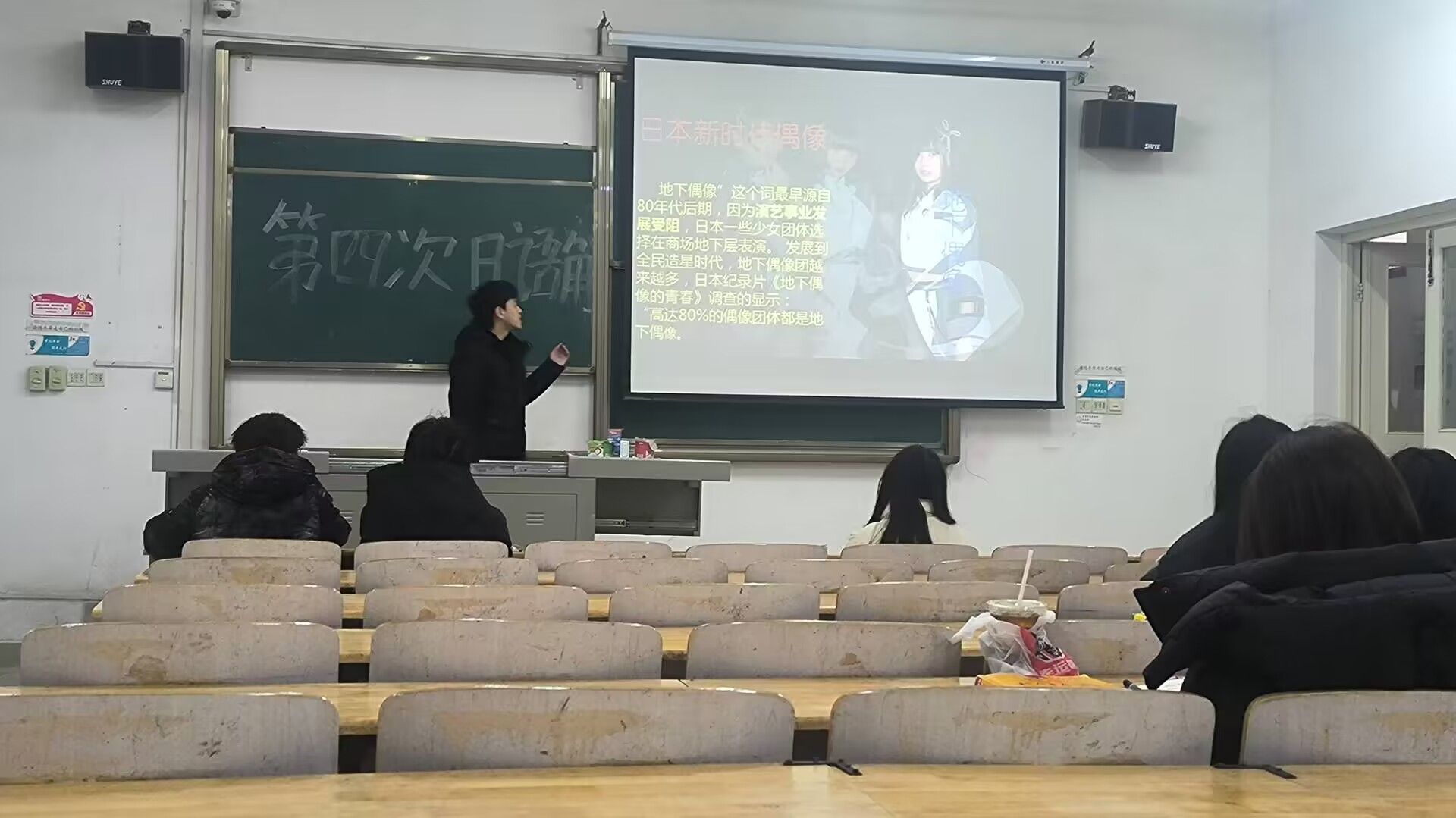 本次日语角活动于2024年1月7日中午1点到2点,在beat365教学楼3-105教室进行。参加人员为杨俭瑞老师、大学日语班级学生、教学助理沈澳。本次日语角的主讲人为大学日语3班的陈颂晟同学,他的演讲主题为日本偶像文化。