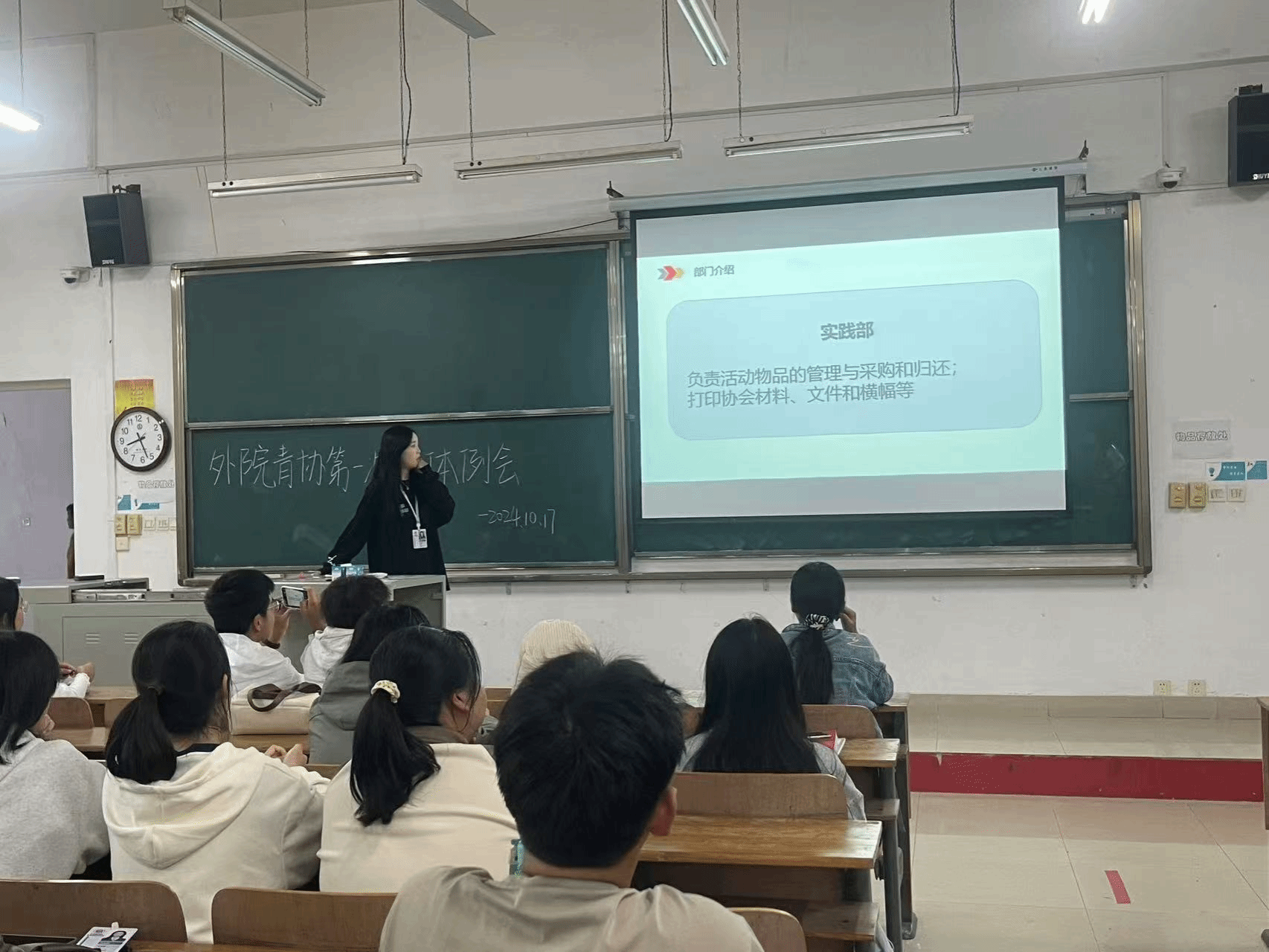 为了使各部门干事能够更加深入地了解其部门的职责以及协会相关注意事项,2024年10月17日20点20分,外国语学院青年志愿者协会在一教101举行了第一次全体例会。参会人员有主席团、各部门干部以及干事们。