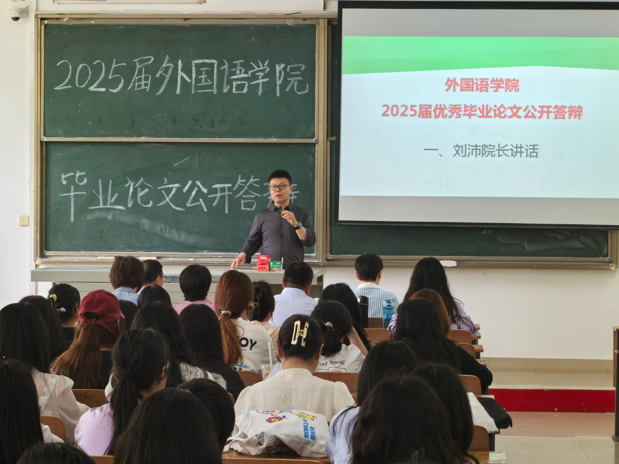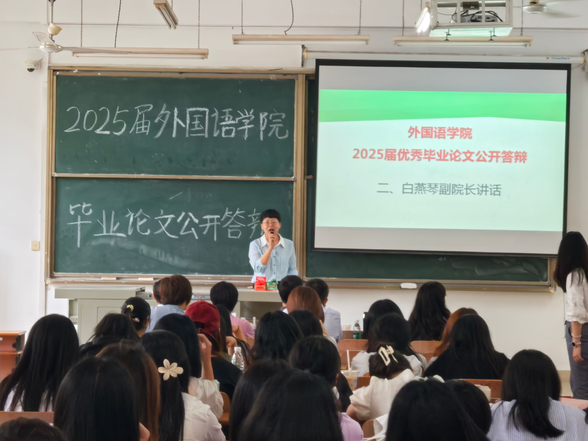 2025年5月9日13:30,外国语学院在第一教学楼306教室举行2025届本科生毕业论文公开答辩会。本次答辩由张憭憭老师主持,英语系和商务英语系共10名优秀毕业生参与答辩,2025届全体毕业生到场观摩学习。