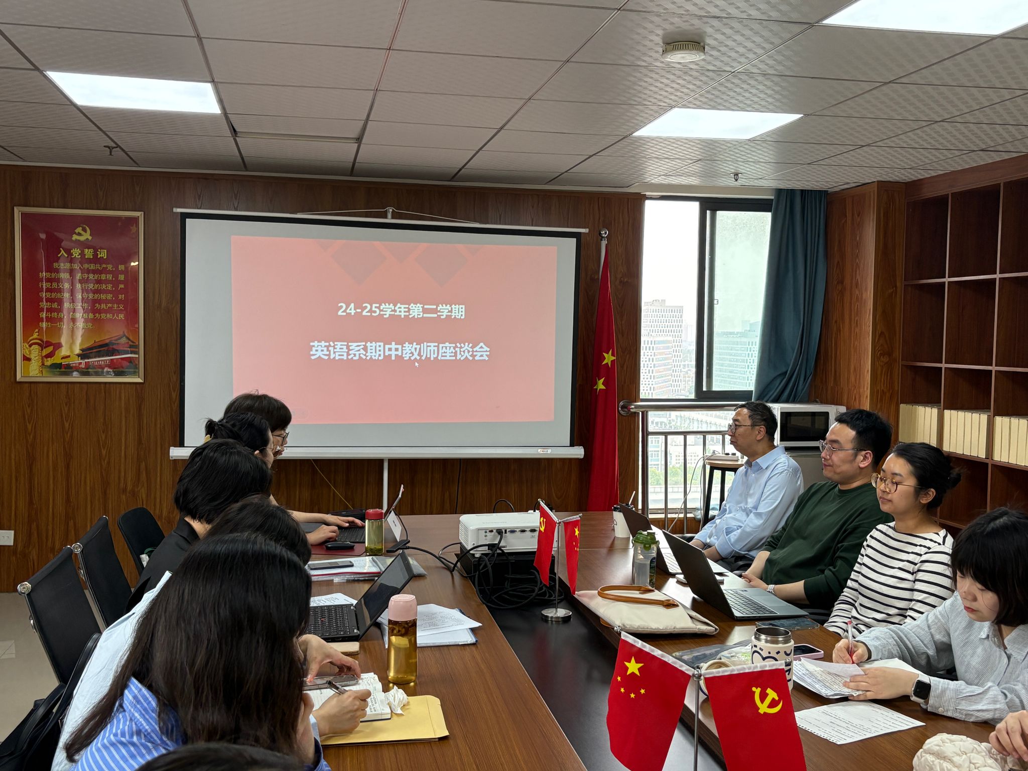 2025年4月24日,24-25学年第二学期英语系期中教师座谈会在学院会议室成功召开。本次会议旨在总结近期工作,明确下一步工作重点,并就教学评估、教师发展等议题进行深入讨论。会议由系主任杨雯娟主持,学院副院长白燕琴、系副主任董妍奇以及多位教师代表出席。
